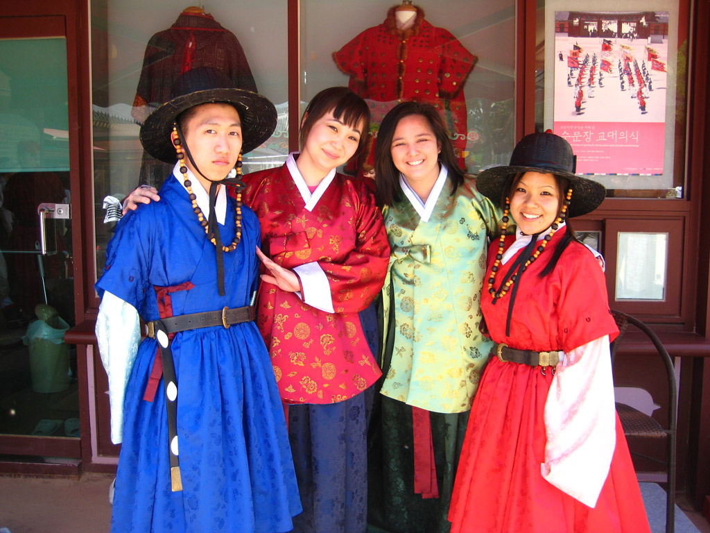 Anyways, there was also a free hanbok place again. This time we all (except ashley) got dressed up again. Cassie and Karen in the womens and Michelle and I in the mens clothing (due to limitations of clothing) haha… that was actually fun 😛 altho the good pictures are on michelle’s camera………